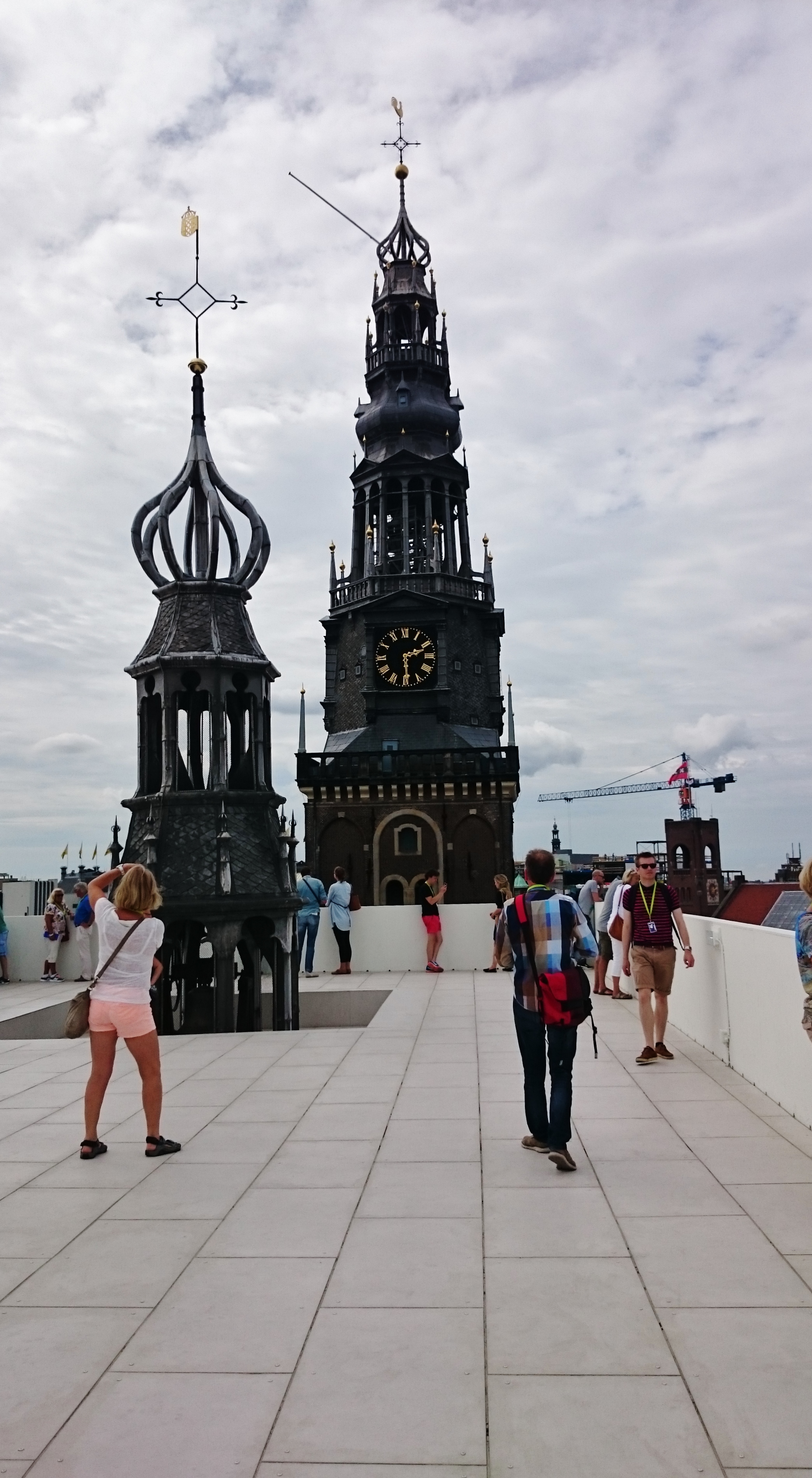 high in the sky. Placing scaffolding against the north-eastern wall of the church, artist Taturo Atzu constructed scary steps that lead up to a spacey white observation platform. This platform stretches between the church weather vane, bell tower and the steeple. By doing so he has given us the opportunity to see both the church and the rest of Amsterdam from a totally different perspective.